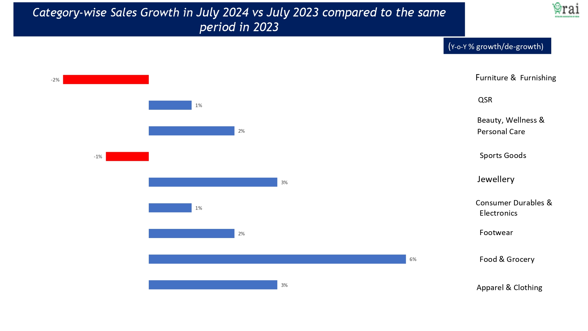 Retailers Association of India just released its 53rd Retail Business Survey, which pegs the retail sector's growth at a modest 2% in July 2024 over the corresponding period in the previous year. It explains the trends that rule various retail segments in different parts of the country. Retail business are yet to show double digit growth. on a like for like basis.
