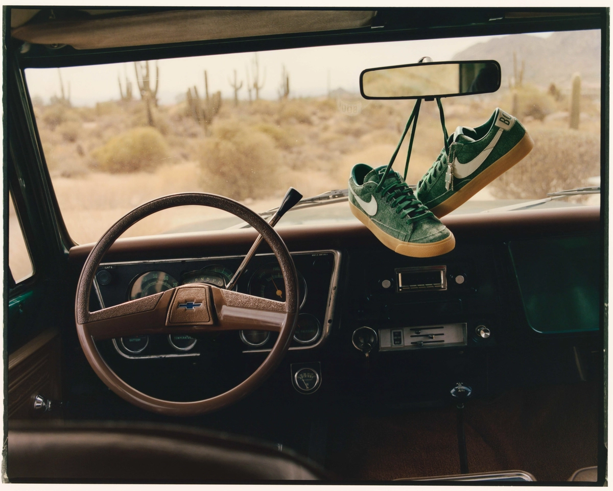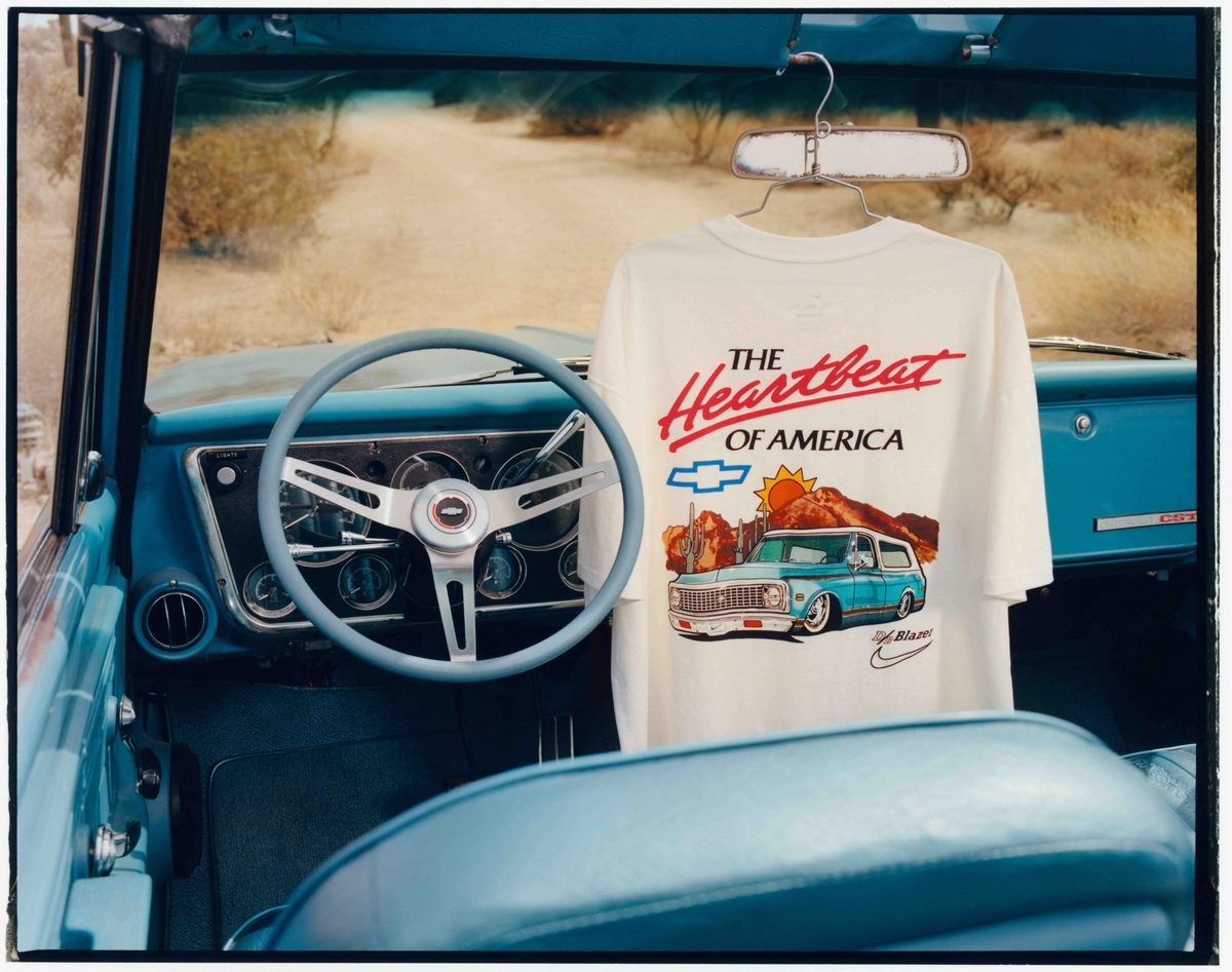 Each of the three footwear offerings pair with Nike x Chevrolet T-shirts that picture the Phoenix Mountains alongside one of Devin’s personal Chevrolet Blazers.