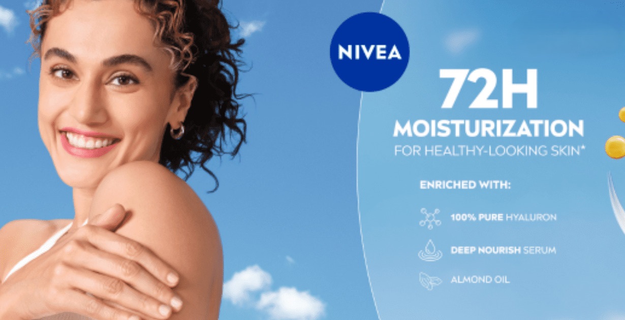 NIVEA TAAPSEE PANNU BODY MILK HYALURONIC ACID 72 HOURS MOISTURISATION LIGHTWEIGHT FAST-ABSORBING GEETIKA MEHTA MANAGING DIRECTOR SHWETA DALAL MARKETING DIRECTOR BRAND FILM DAILY BODY CARE NATIONAL