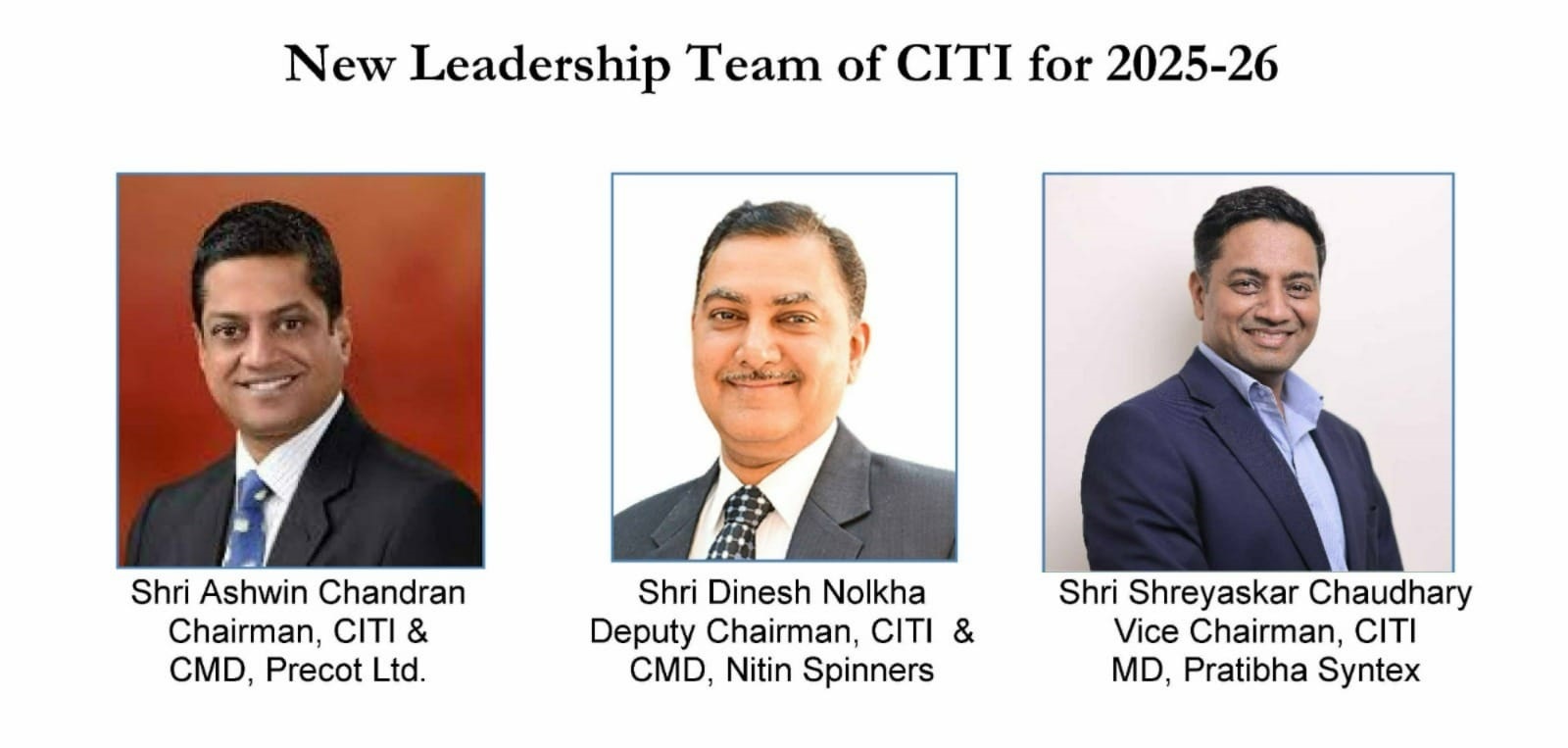 Chandran takes over the chairmanship from Shri Rakesh Mehra whose term ended on September 18 following the conclusion of CITI’s 67th AGM which was held during the day.