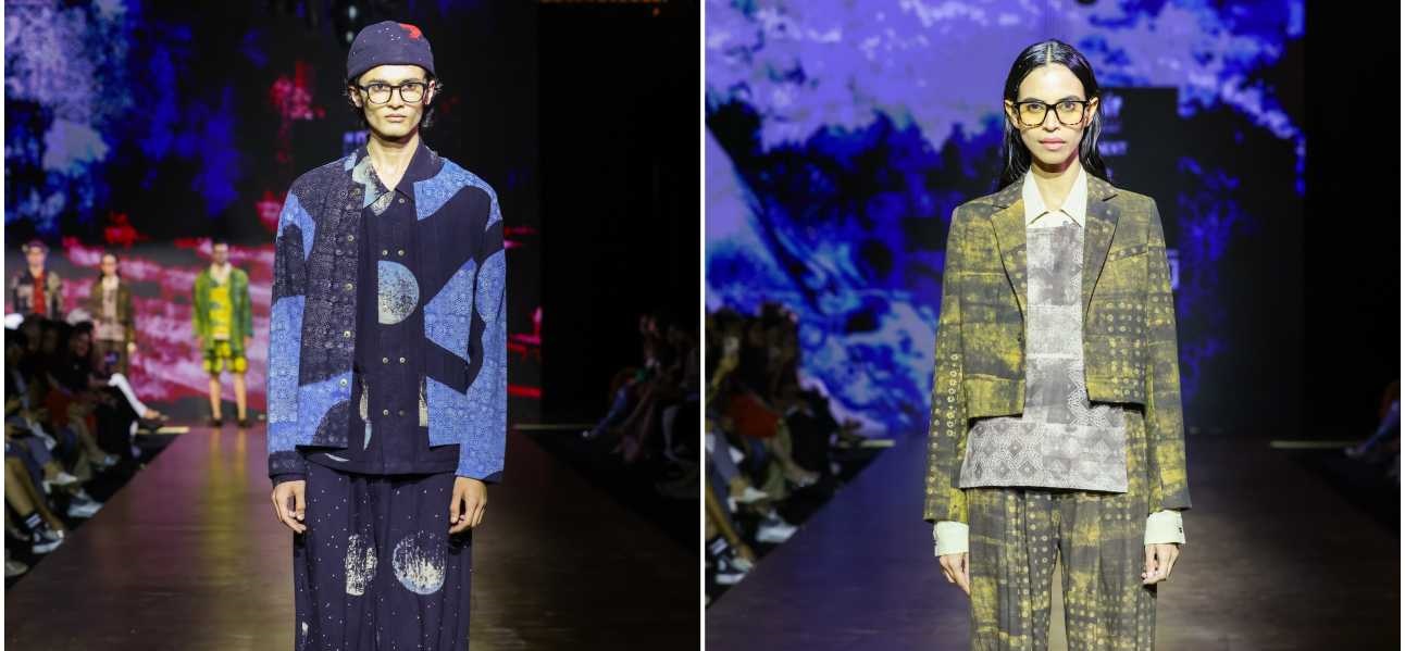 The Fall/Winter 2025 line paid quiet homage to the land of Kala Cotton, which was the base of the creations. Allowing the prints and textures to do all the talking, Mohammed retained minimal silhouettes. The intentional use of worn out broken Ajrakh blocks was a conscious effort to give the passage of time importance. The beauty of the collection lay in the personal hand painting and the block printing executed personally by the designer that presented a valuable offering. The 23°N 69°E brand by Mohammed Anas Sheikh ensured that an unconventional fashion offering would be presented for the coming season.