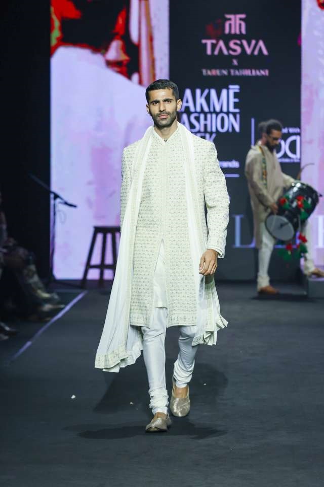 “Showcasing at Lakmē Fashion Week in partnership with FDCI is always an opportunity to celebrate the evolving narrative of India Modern. With Tasva, we wanted to bring forth a collection that honours the country’s rich craftsmanship while redefining festive menswear for the modern man, comfortable, timeless, and elegant, in equal measure,” said the designer Tarun Tahiliani.