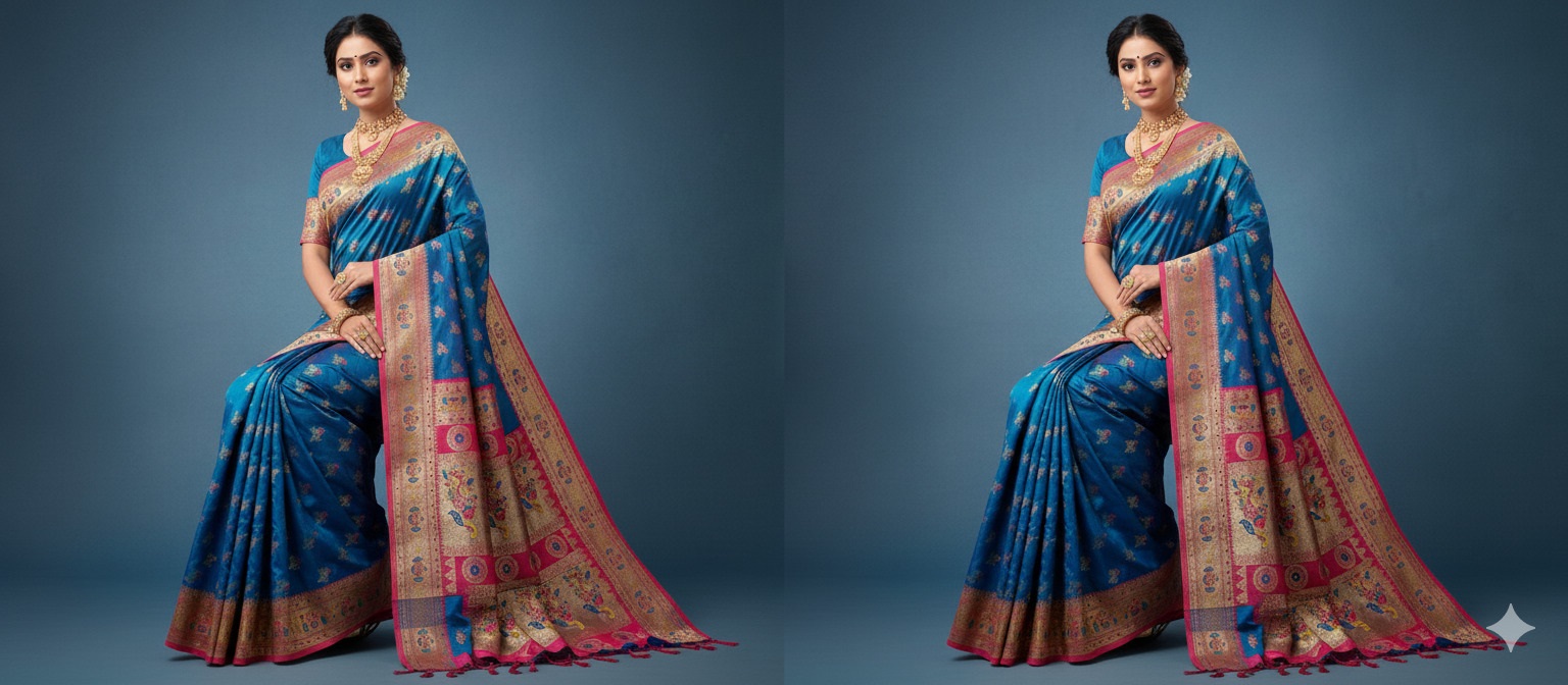 Indian Desi has built its reputation on curating sarees that appeal to a wide spectrum of customers. Whether one seeks the luxury of handwoven silks for weddings and festivities, or light printed drapes for everyday elegance, the brand offers a diverse palette. The new season’s designs highlight intricate zari work from Banaras, bold motifs of Paithani, and the flowing softness of chiffon—all carefully selected to provide variety without compromising authenticity.