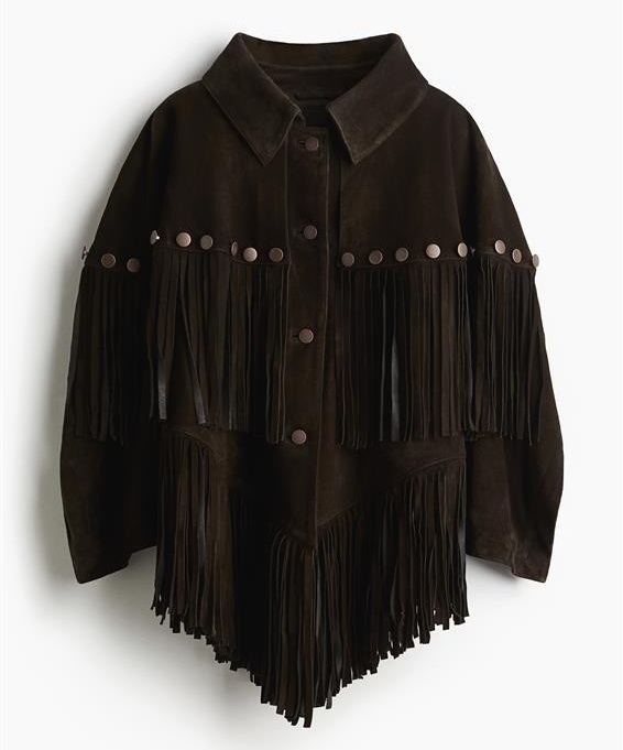 Accessories layer the collection with stories and character. Lorena’s grandmother’s lion earrings served as the model for the earrings and buttons, while the brown suede cowboy boots, broad-brimmed hat and decorative belt add unmistakable flair.