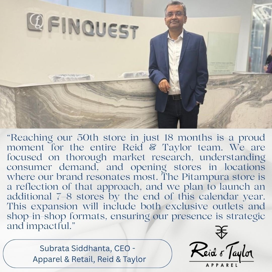 Reid & Taylor Apparel, one of India’s leading menswear brands, has reached a significant milestone with the inauguration of its 50th store at Pitampura, New Delhi, marking a remarkable expansion journey over the past 18 months. This achievement underscores the brand’s commitment to offering premium-quality, fashion-forward apparel for the modern Indian man.