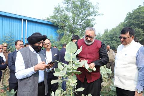 Union Textiles Minister Giriraj Singh visited Northern Indian Textile Research Association (NITRA) today and inspected the Milkweed (Aak) crop being cultivated on the campus. The Union Minister appreciated NITRA’s pioneering research on Aak/Milkweed, noting that it has the potential to bring a revolution in the textile sector. The minister also mentioned that this is one of the smart-age fibres and NITRA has already transferred this technology to several leading companies, and in discussion with others for adopting it.