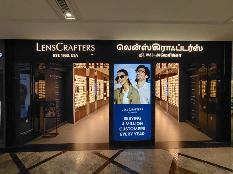 LENSCRAFTERS CHENNAI PHOENIX MARKET CITY PMC INDIA RETAIL STORE 11TH OUTLET EXPANSION PREMIUM EYEWEAR EYE CARE PRESCRIPTION GLASSES SUNGLASSES ADVANCED EYE EXAMS RAY-BAN OAKLEY VERSACE RELIANCE BRANDS TECHNOLOGY DESIGNER FRAMES PERSONAL NATIONAL