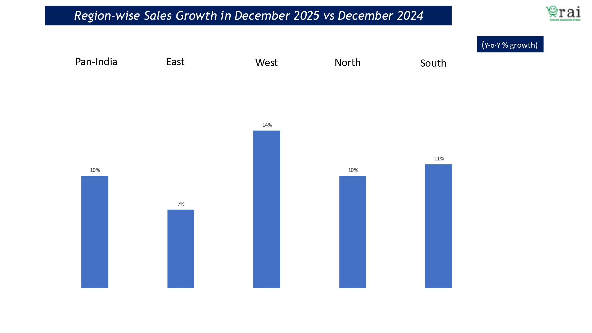 Regionally, retail growth in December 2025 remained broad-based, with the West recording the strongest performance at 14 per cent. The South followed with 11 per cent growth, while the North reported 10 per cent growth. The East, though relatively slower, still posted a positive growth of 7 per cent. The distribution of growth across regions reflects a relatively balanced demand environment, with no single geography accounting for a disproportionate share of expansion.