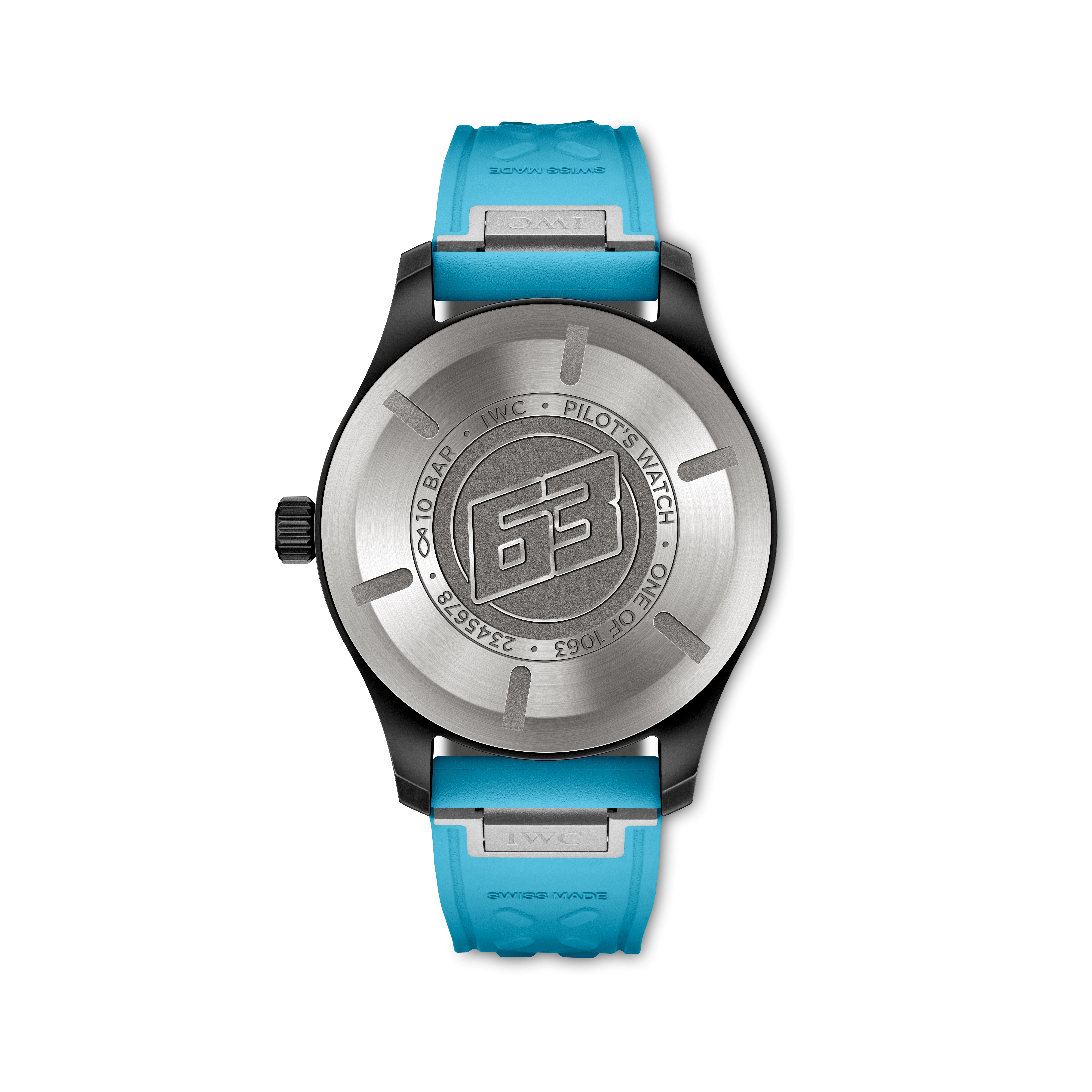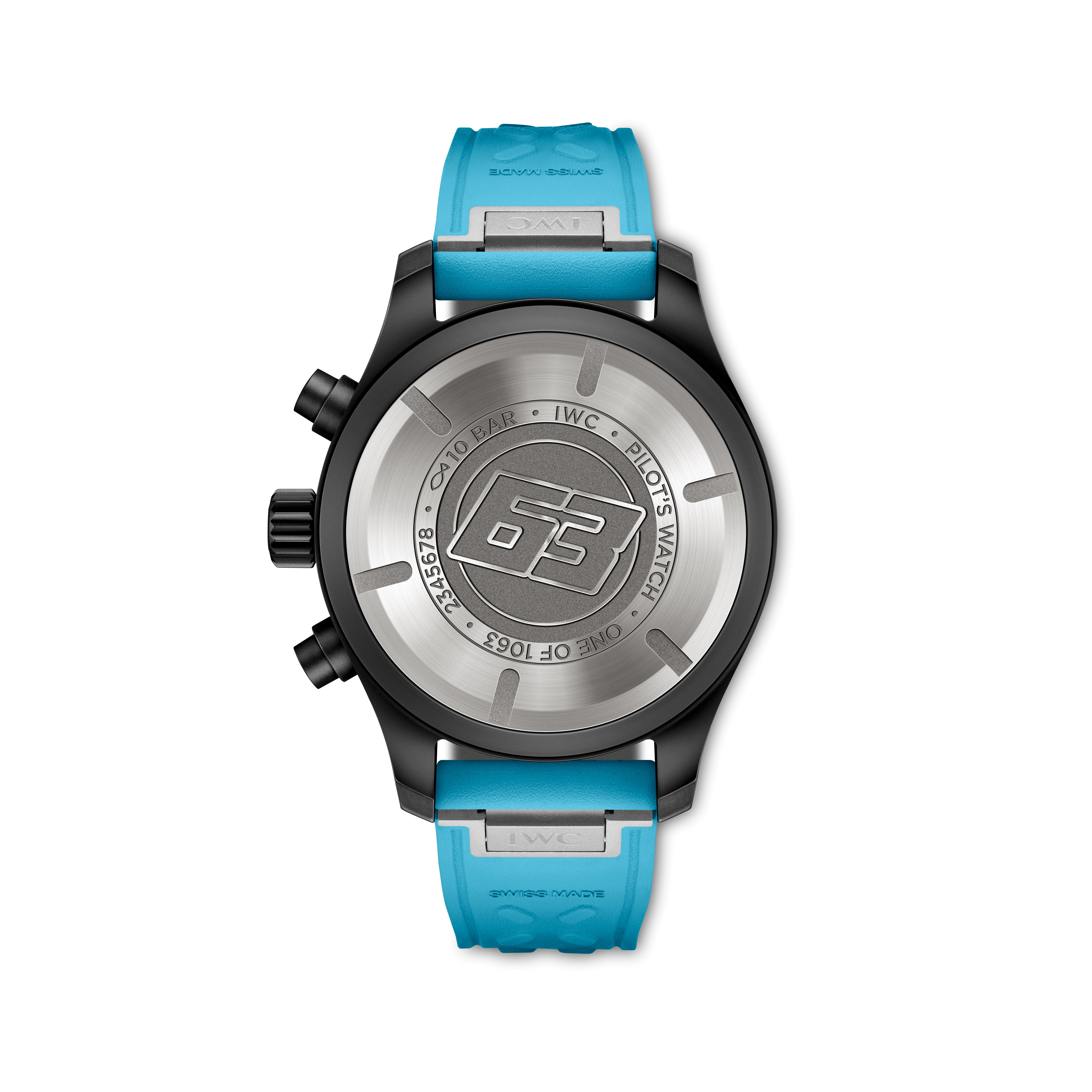 They feature black dials with printing and luminescence in a striking blue colour, reflecting the signature blue hue also seen on Russell’s helmet. The watches are equipped with titanium case backs and engraved with the driver’s starting number, “63”. The chronograph is powered by the IWC-manufactured 69380 calibre, while the automatic model features the IWC-manufactured 32112 calibre. Both watches come with durable blue rubber straps fitted with the EasX-CHANGE system.