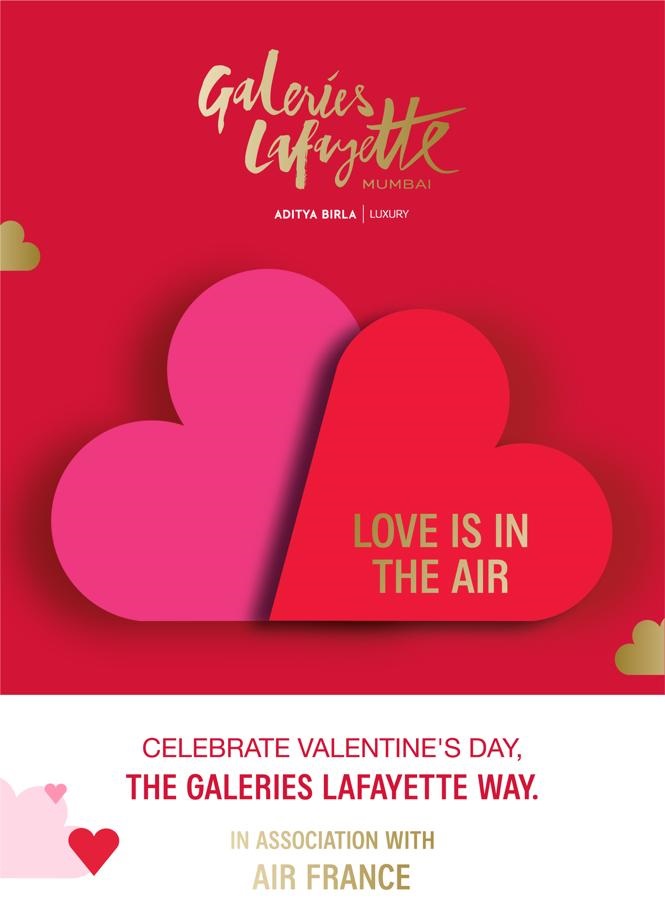 GALERIES LAFAYETTE MUMBAI LOVE IS IN THE AIR VALENTINE’S DAY CAMPAIGN AIR FRANCE BUSINESS CLASS TICKETS TO PARIS ROOFTOP DINNER AT GALERIES LAFAYETTE PARIS MIDNIGHT IN PARIS SCREENING FRENCH CINEMA EVENING PARISIAN-INSPIRED CELEBRATION DIOR GI NATIONAL