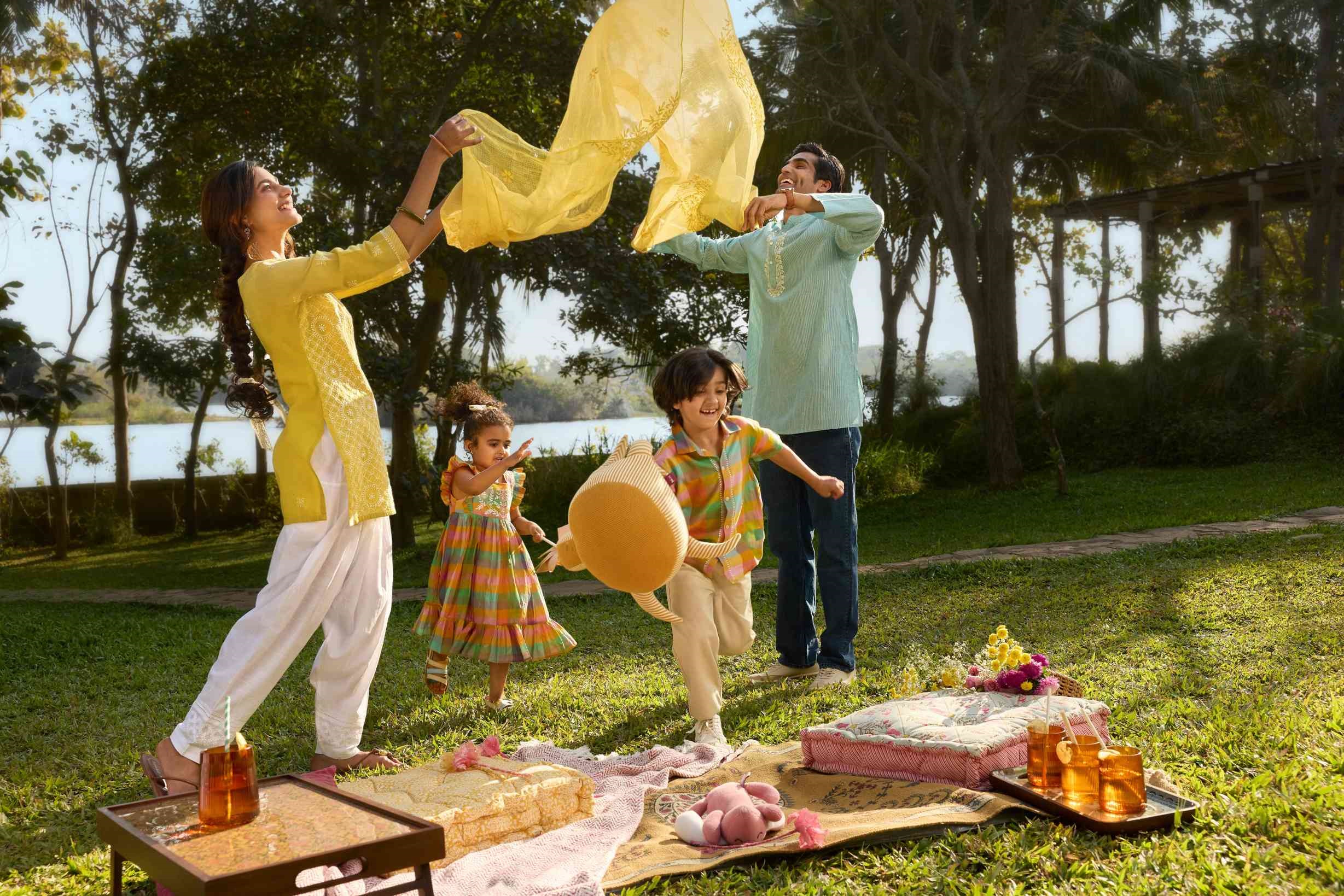 The menswear line includes kurtas and shirts with embroidered detailing, while the kidswear range features embroidered kurtas and checkered shirts in lighter seasonal tones. The collection is available across more than 350 Fabindia stores and carries the Craftmark tag to indicate hand-crafted authenticity.