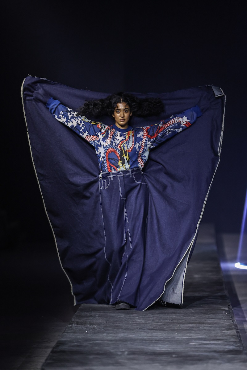 Backed by NEXA, The Spotlight is an initiative dedicated to discovering and nurturing emerging design talent across the country. The platform provides young designers with the visibility and industry support required to bring innovative ideas to the forefront of Indian fashion. The designer presented a collection titled ‘The New Primitive – Reclaiming Rawness in a Refined World’. The collection took inspiration from the dynamic visual narratives found in the works of Japanese artist Utagawa Kuniyoshi, translating the sense of movement and rhythm present in his art into a contemporary design language.