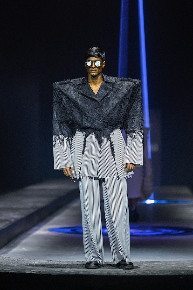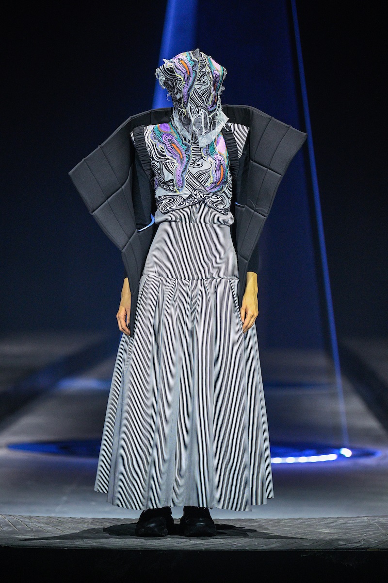 Silhouettes within the collection mirrored the structural qualities of the textiles. Architectonic yet wearable, the garments were defined by structured geometry, reinforced construction and layered surface depth. Deconstruction was introduced strategically, revealing internal frameworks that emphasised the interplay between organic movement and engineered precision. Gupta built a narrative that he described as a form of ‘tectonic synthesis,’ a space where material science and natural processes existed in calibrated equilibrium.