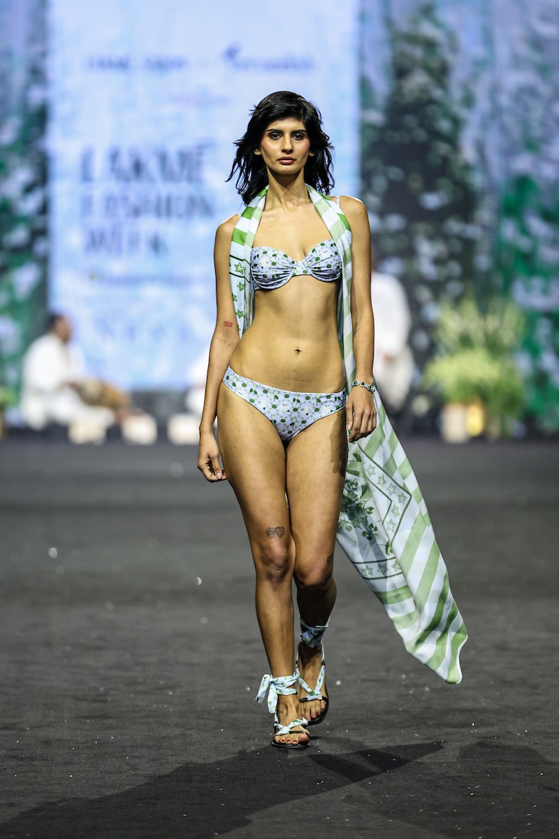 Actor Diana Penty, who embodies the values of the brand and has been close to the brand journey, closed the showcase as the showstopper for Lakme Salon X Verandah dressed in a fluid, hand-beaded kaftan crafted in sustainable Ecovero, featuring delicate sequin work and a signature magnolia print from the Ammama collection, an ode to designer Anjali Patel Mehta’s grandmother, inspired by the cherished tree at her Bangalore home. Rendered in rich midnight blue to evoke the tree’s beauty under the night sky, the look balanced sentiment with laid back glamour, effortlessly elegant and elevated statement summer dressing for Goa to St Tropez, St Barths to Bora Bora.