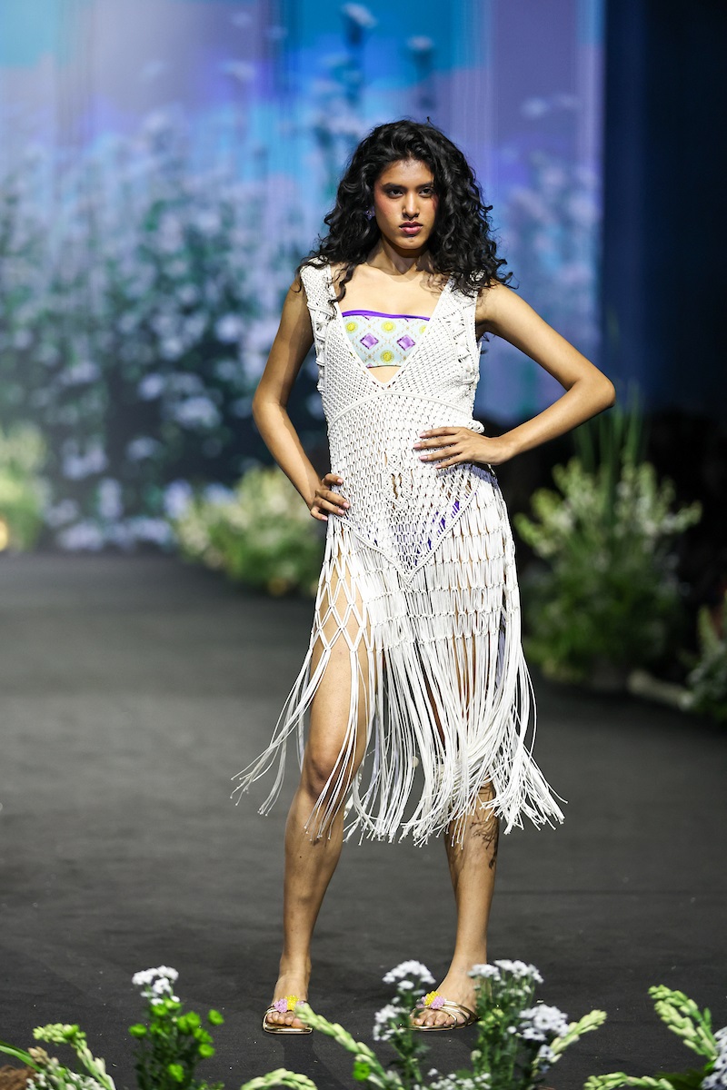 Across both collections, Verandah presented a versatile, day-to-night summer wardrobe that moved seamlessly from beach to bar and city to vacation. Fluid, easy silhouettes including draped gowns, mini dresses and relaxed daywear were crafted in sustainable fabrications, alongside consciously developed swimwear handcrafted in Italy and designed in India. Signature hand-beading, artisanal detailing and a standout macramé piece added texture and depth, while recurring jewellery-inspired and floral motifs carried memories of the designer’s grandmother through each look. Designed for versatility and ease across body types, the collection reflects Verandah’s signature approach to conscious luxury—effortless, elevated and rooted in storytelling.